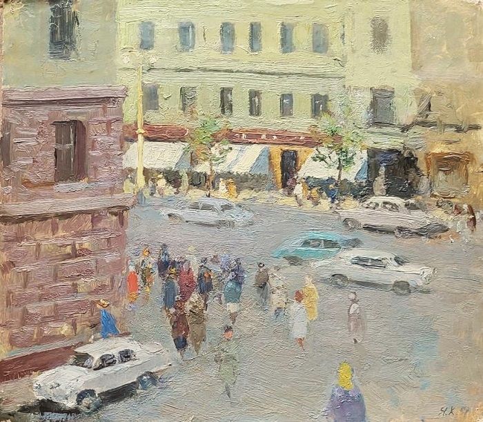 Y.Khaimov “Moskow, Corner Tverskaya street and Blagoveshchenskiy pereulok” 1960-s