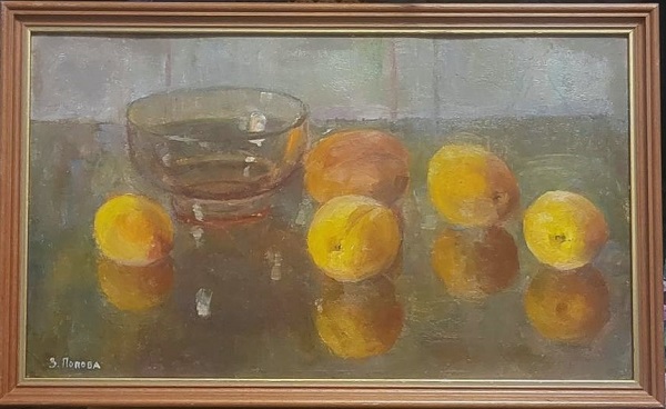 Zoya Popova (born 1915) studied at the Saratov Art College until 1938. She became a member of the Union of the Artists in 1964. Specialised in still life and portraits. Her works are held in Volgograd and Astrakhan Art Museums. Taught at Astrakhan Art College 1980s - 1990s. Many of her paintings have found their way to private collections in the Russia, Great Britain, Japan, Germany and France.